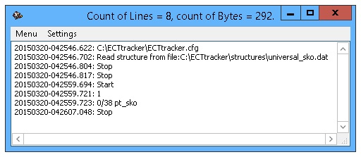 A simple and user-friendly interface allows performing initial configurations quickly and begin working immediately with ECTtracker. All the basic functionality of the main menu is duplicated with "hot keys" for quick access. In addition, ECTtracker supports different localizations, allowing users to work with the program in their native language.